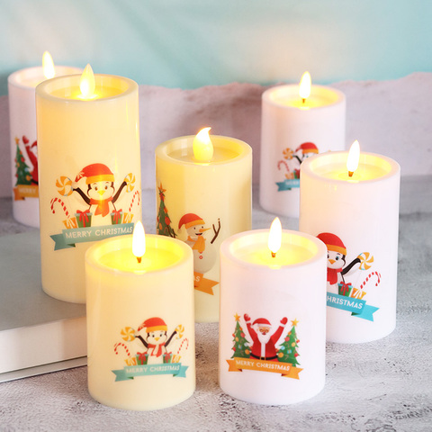 เทียน LED จากโรงงานโดยตรงของอี้อู สำหรับตกแต่งบ้าน เทียนเสา LED แบบเปลวไฟเคลื่อนไหว ทำจากขี้ผึ้ง สำหรับตกแต่งคริสต์มาส